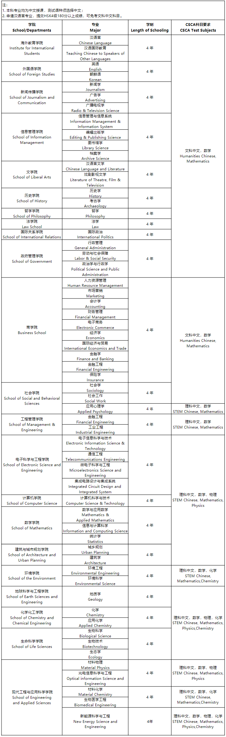 입학 조건 | - 고졸 이상 - 만 18세 ~ 만 30세 - 신HSK 5급(각 과목 60점 이상) - CSCA 성적보유자 - 검정고시자 불가 | ||||||||||||||