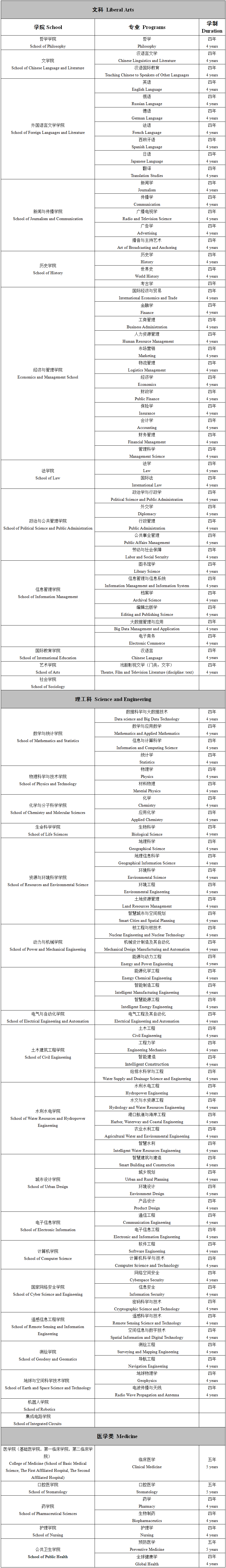 준비서류 | ① 여권사본 ② 여권용 사진 3장 ③ 고등학교 졸업증명(영문) ④ 고등학교 성적증명(영문) ⑤ HSK 성적증명(사본) ⑥ CSCA 성적표 ⑥ 은행잔고증명(미화 5000달러 이상의 잔고) ⑦ 신체검사서(입학 등록 시 원본 제출 필수) ⑧ 중국에 거주하고 있으며, 학습 경력이 있는 신청자는 학습 상황 제출 ⑨ 수상증명(있을 경우) | ||||||||||||||