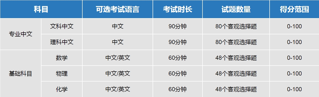 ※ 수학, 물리, 화학 시험은 중국어와 영어로 시험 문제가 출제 됩니다. 수험생은 적절한 시험 언어를 선택해야 합니다.